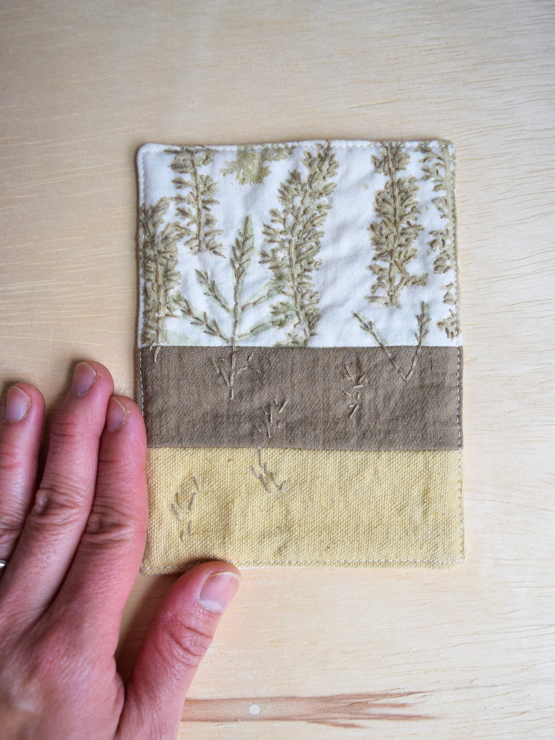 - Natural dyed embroidery floss with marigold (yellow), marigold + iron (olive green)