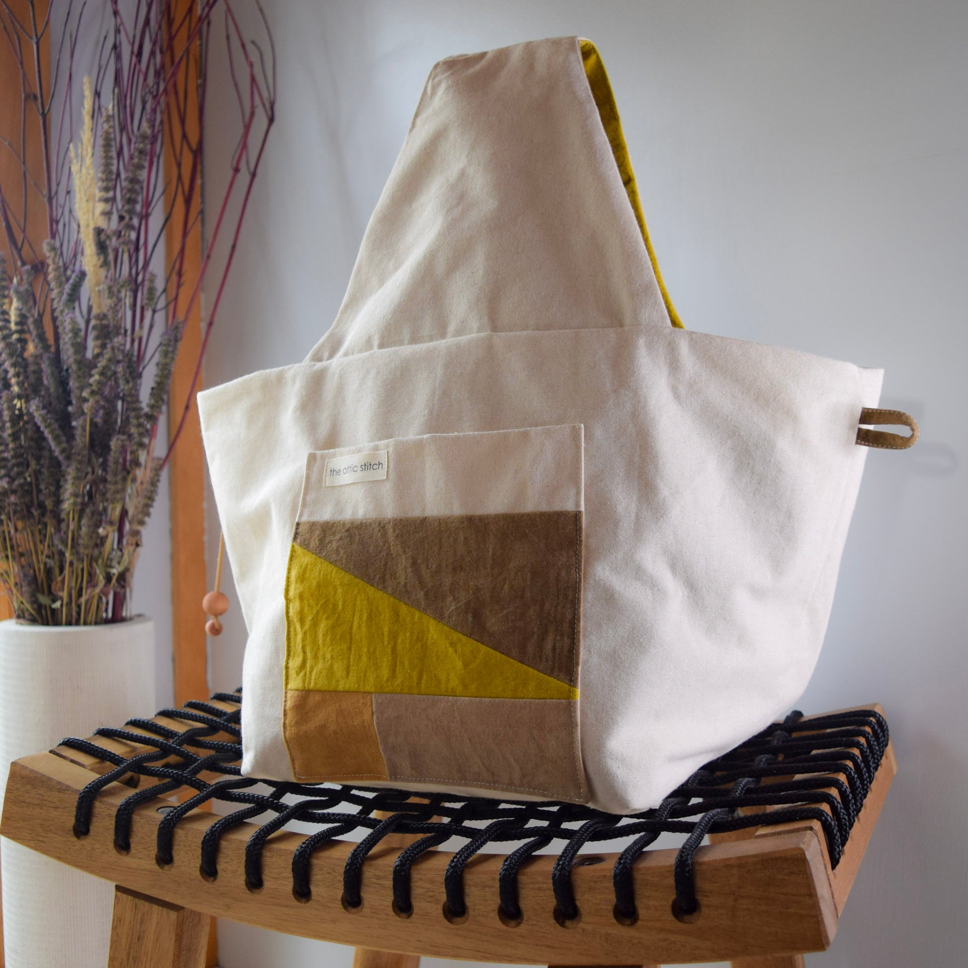 Inspired by the Japanese Azuma bag, our reversible bag is handcrafted from utility cotton fabrics, which are hand dyed with natural, botanical materials. It has wide handles and a functional pocket to keep essentials close to hand. This bag is designed with fully lined interior making it sturdy for everyday use.