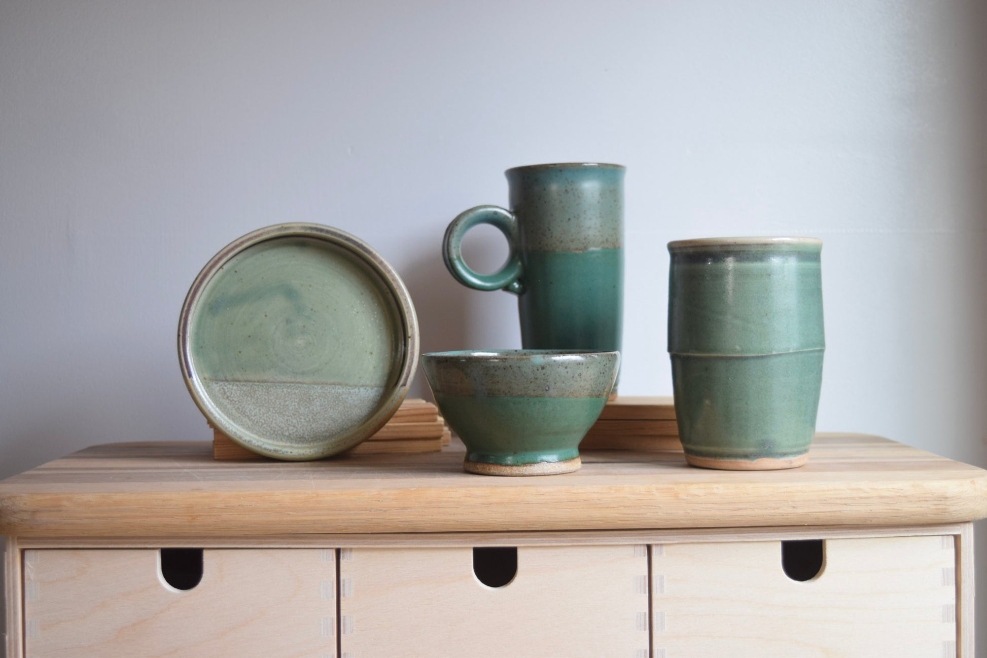 - Wheel thrown, hand glazed stoneware
