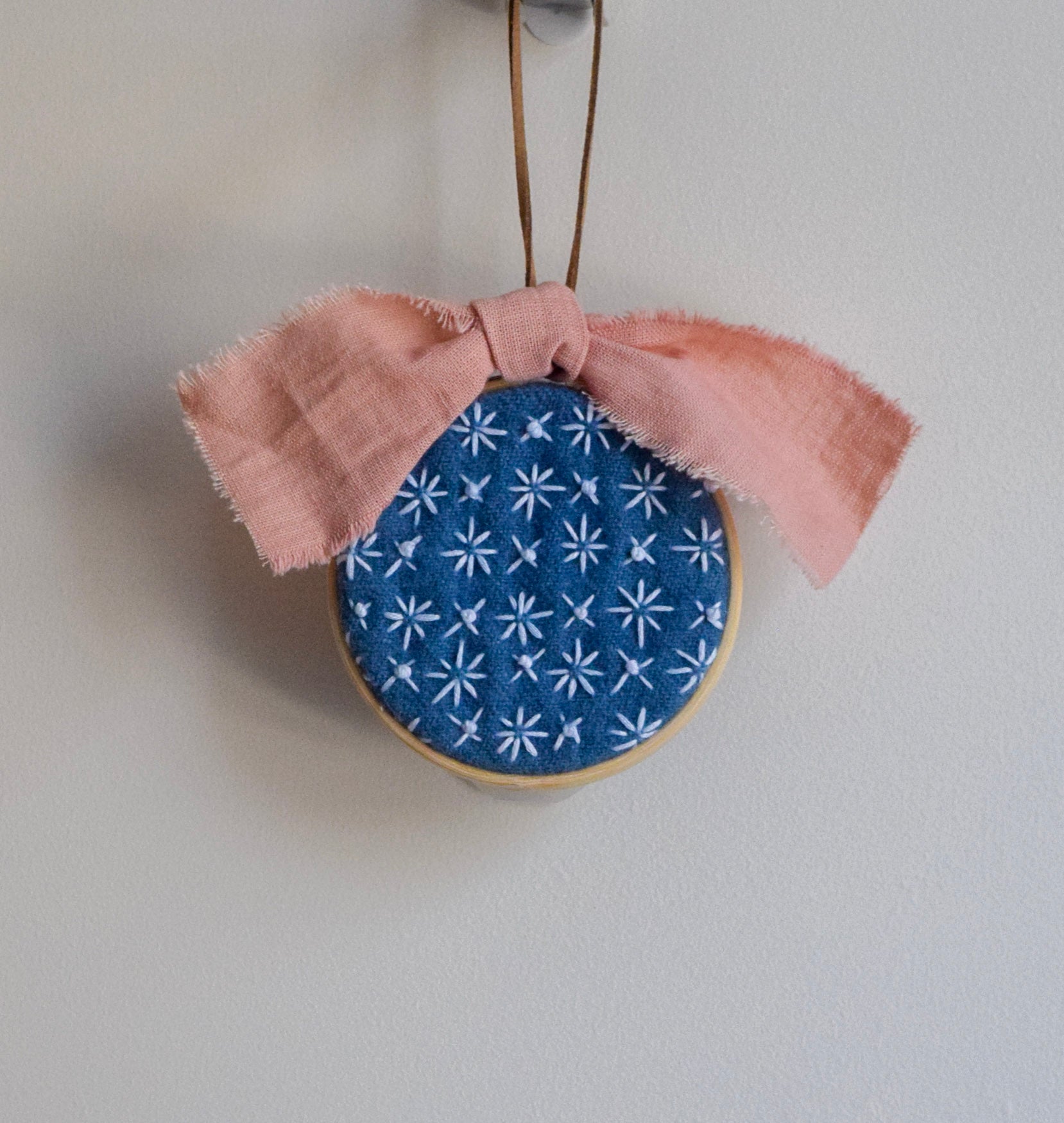 Hand-stitched sashiko on botanical-dyed wool, inspired by winter light and garden-grown color. Each medallion is a quiet, tactile wall piece meant to bring warmth and calm to everyday spaces.
