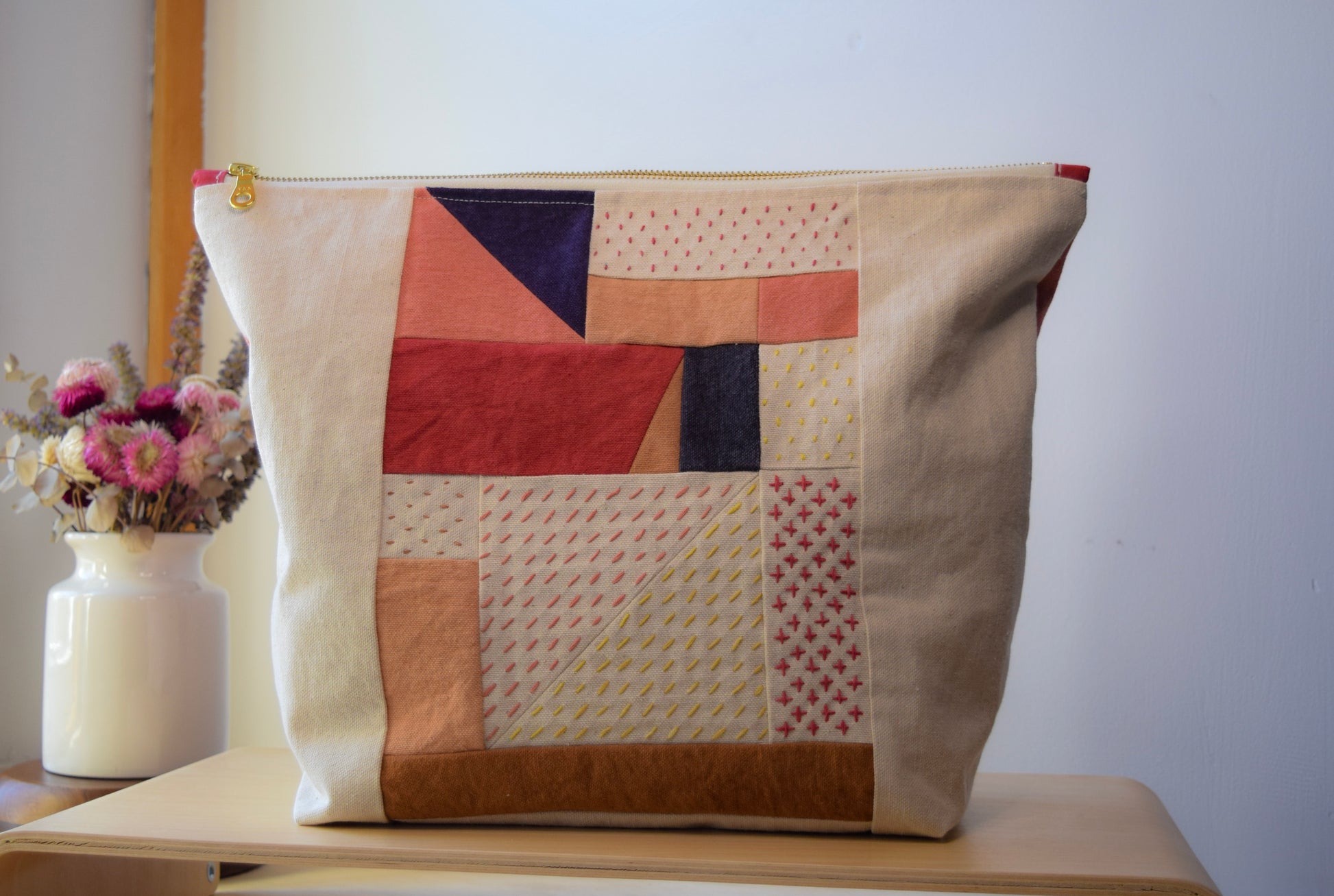 Motif FIVE | Botanical-dyed patchwork pouch bag | Large